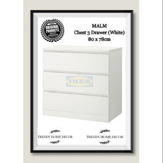 Ikea Malm Chest Of 3 Drawers 80x78cm White High Gloss Home Office